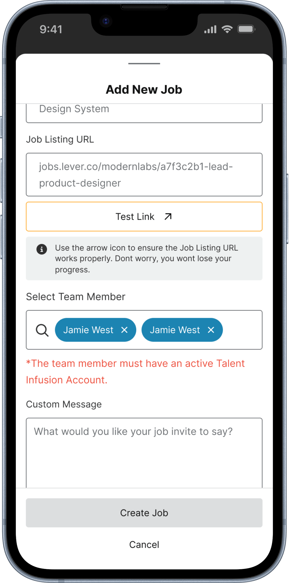 Use Case: The enterprise user is creating a new job but is either collaborating on the recruitment effort or is doing so on behalf of another enterprise user.