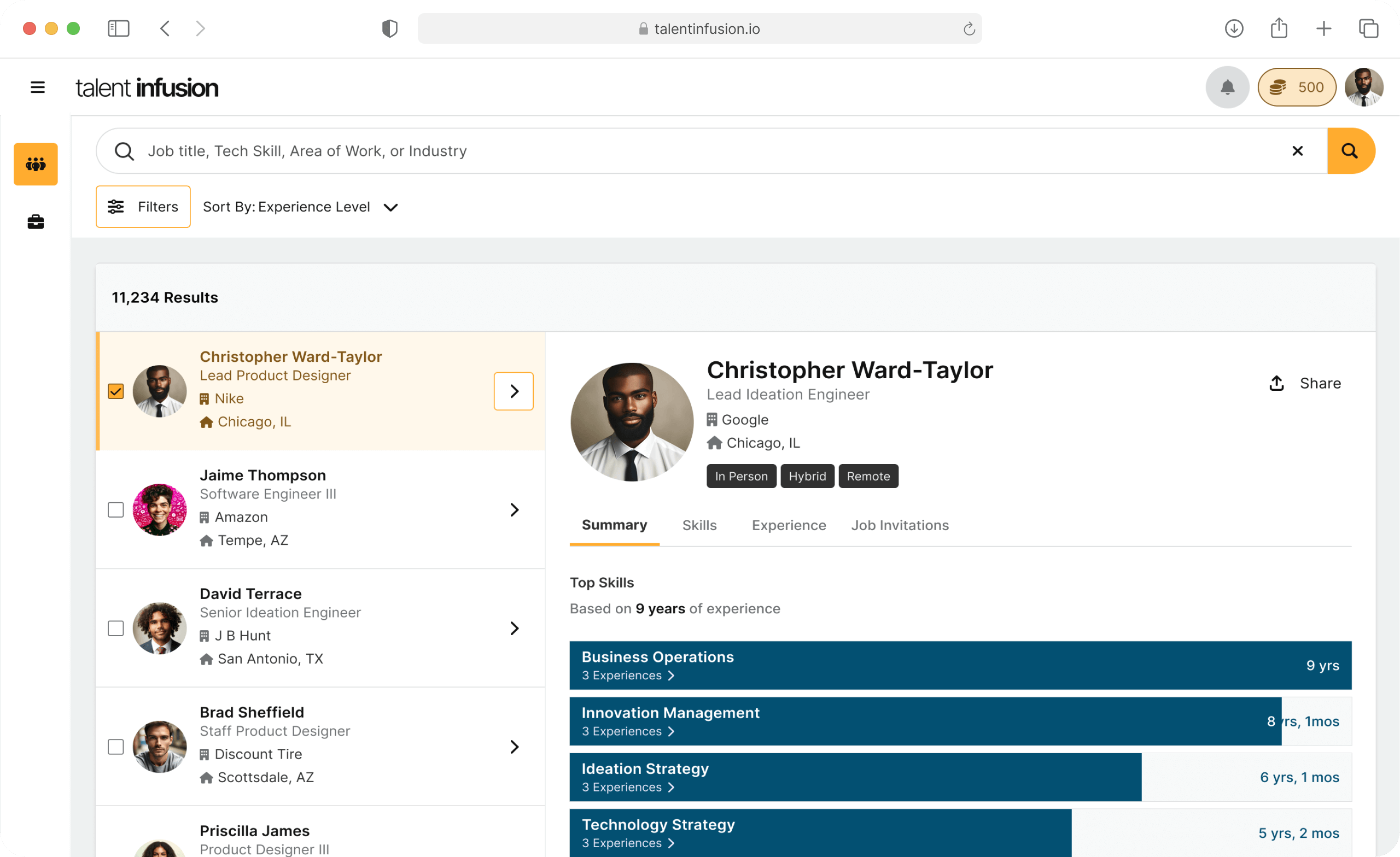 Designed experiences that enabled recruiters to find and invite diverse candidates 67% faster while ensuring underrepresented talent gained visibility based on skills, not pedigree.